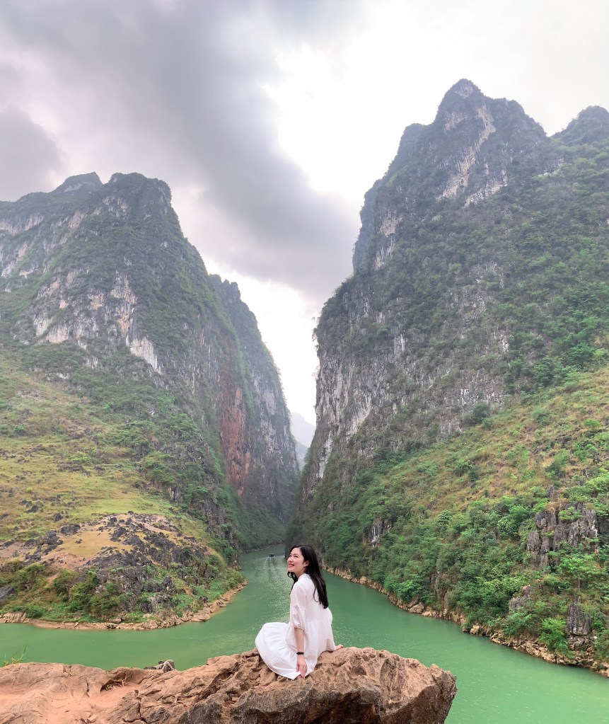 Xuống tới nơi rồi này, dòng sông Nho Quế mang màu ngọc bích hoà mình trong sự gai góc hiểm trở của Hẻm vực Tu Sản, những con thuyền nhỏ bé rẽ nước trong sự hùng vĩ ấy mới thấy giữa thiên nhiên này, con người thật sự quá nhỏ bé…
