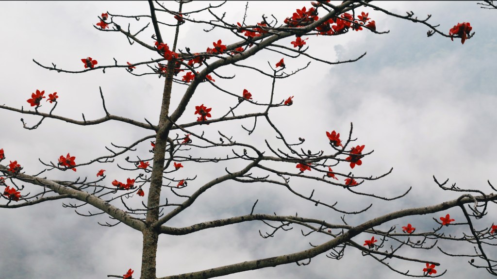 Trên đỉnh dốc có các bé bán hoa đội đầu, đều là thức hoa của núi rừng do các em tự đi hái và kết lại bán cho du khách, bé nào bé ấy đều tươi tắn như những bông hoa các em đang cầm ấy,
